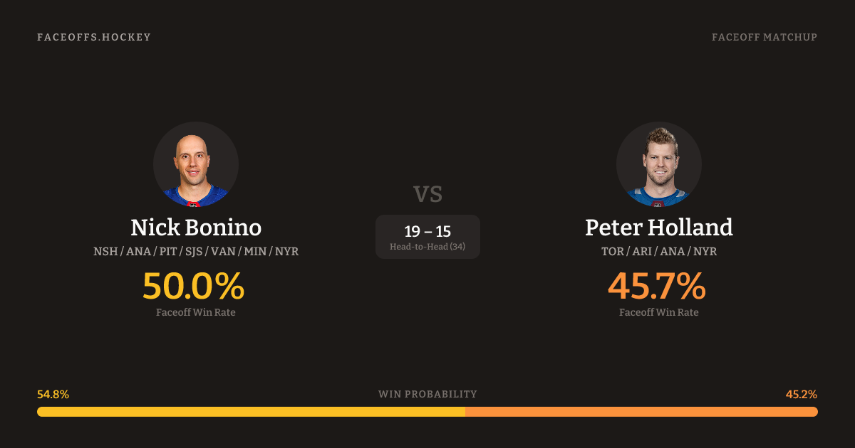 Nick Bonino vs Peter Holland — Faceoff Head-to-Head