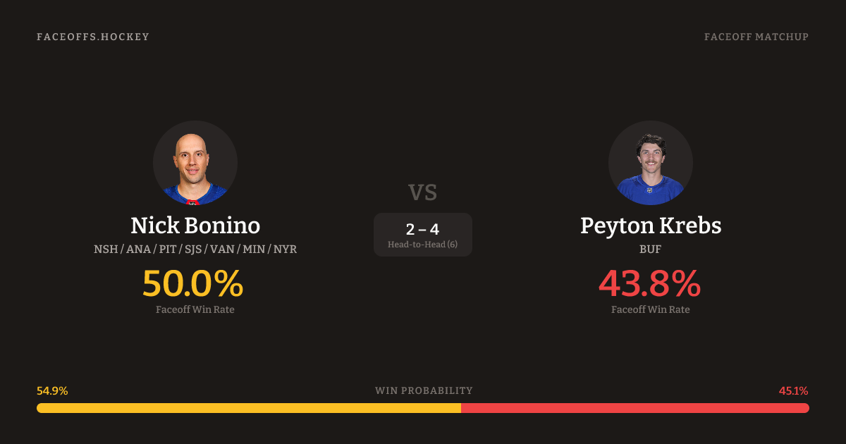 Nick Bonino vs Peyton Krebs — Faceoff Head-to-Head