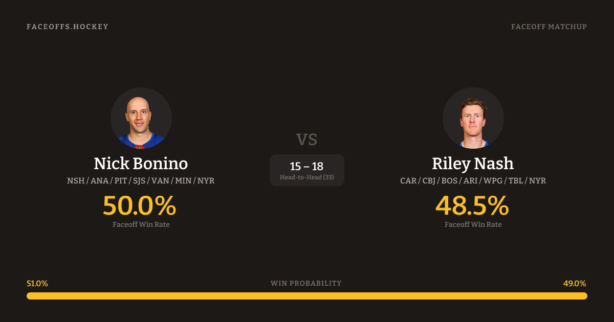Nick Bonino vs Riley Nash — Faceoff Head-to-Head