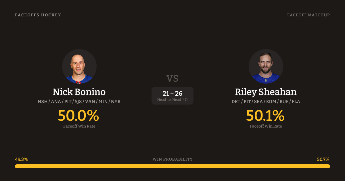 Nick Bonino vs Riley Sheahan — Faceoff Head-to-Head
