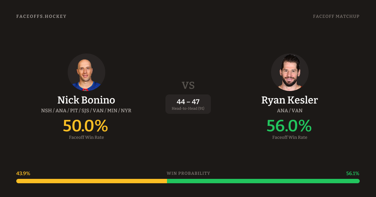 Nick Bonino vs Ryan Kesler — Faceoff Head-to-Head