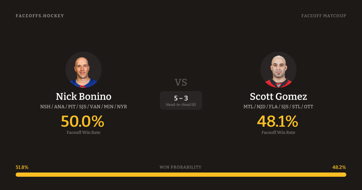 Nick Bonino vs Scott Gomez — Faceoff Head-to-Head