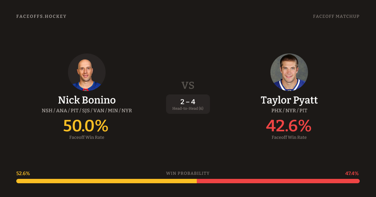 Nick Bonino vs Taylor Pyatt — Faceoff Head-to-Head