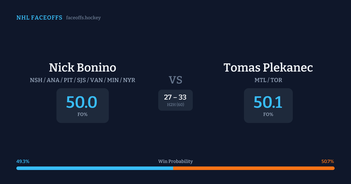 Nick Bonino vs Tomas Plekanec — Faceoff Head-to-Head