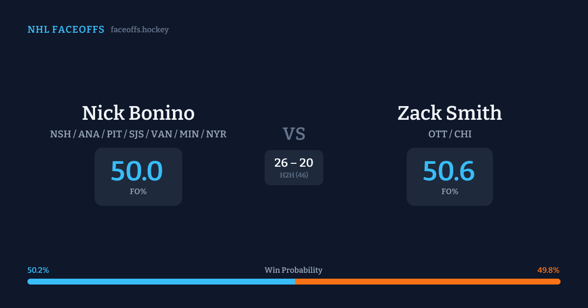 Nick Bonino vs Zack Smith — Faceoff Head-to-Head