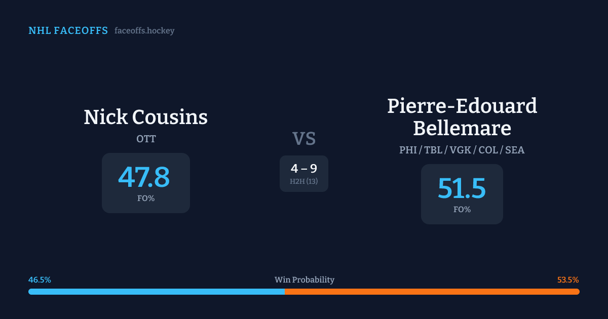 Nick Cousins vs Pierre-Edouard Bellemare — Faceoff Head-to-Head