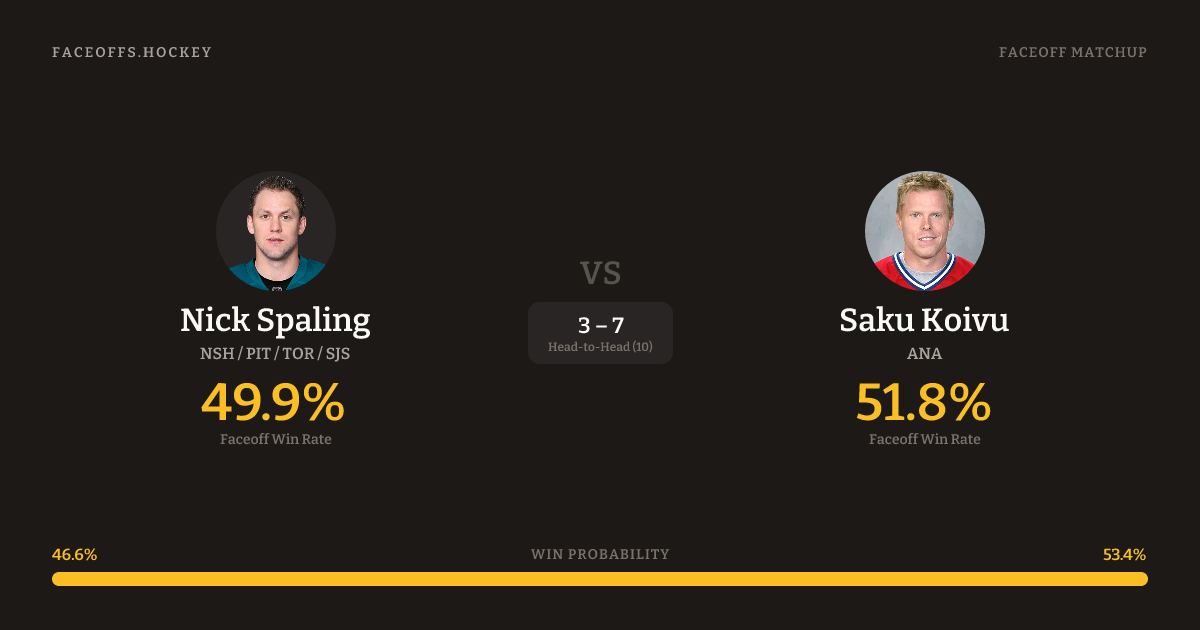 Nick Spaling vs Saku Koivu — Faceoff Head-to-Head