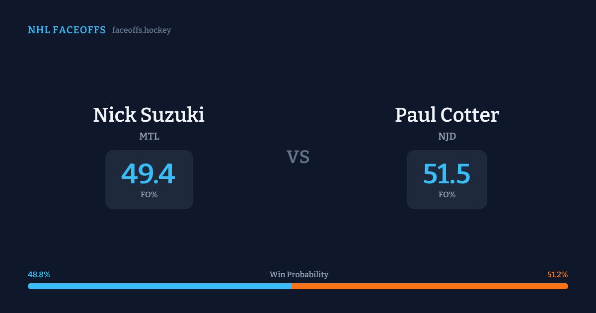 Nick Suzuki vs Paul Cotter — Faceoff Head-to-Head