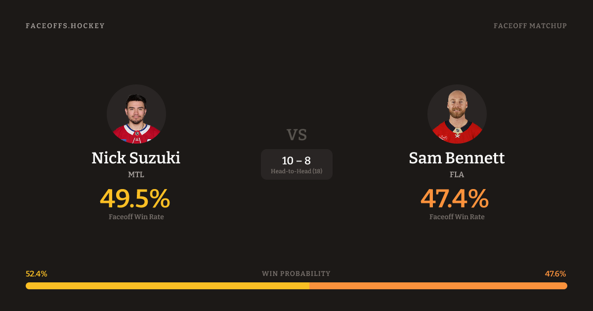 Nick Suzuki vs Sam Bennett — Faceoff Head-to-Head
