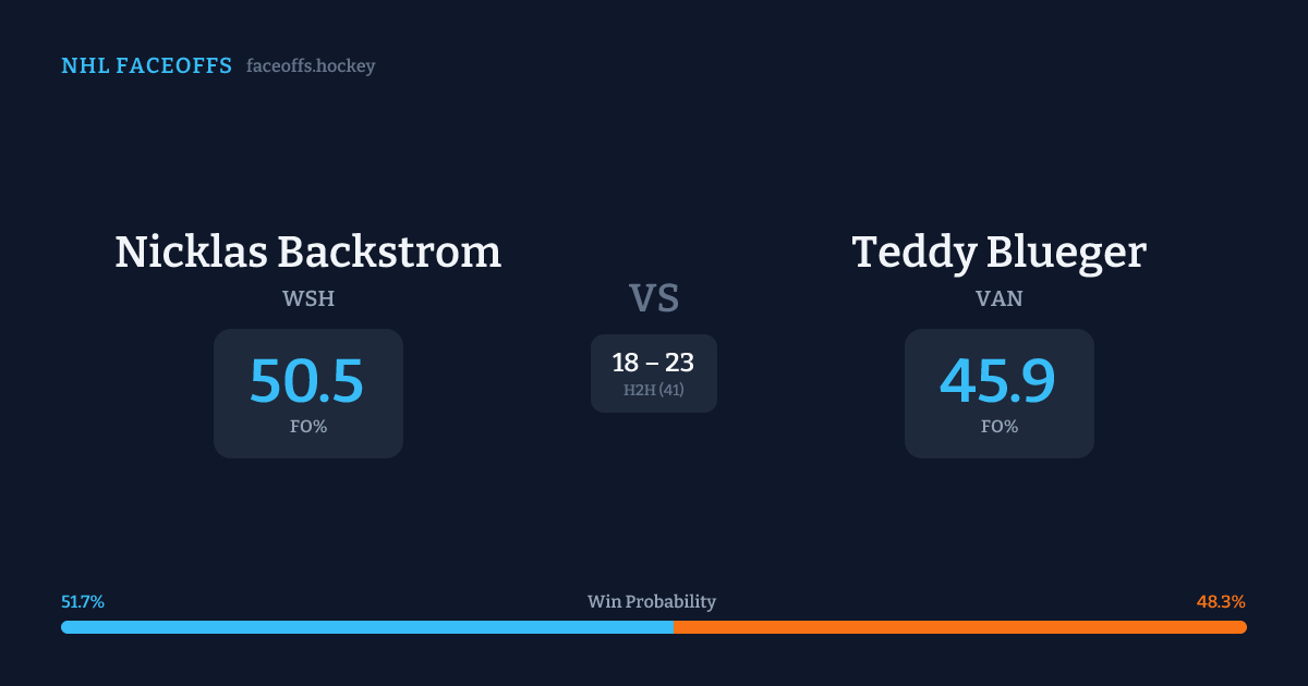 Nicklas Backstrom vs Teddy Blueger — Faceoff Head-to-Head