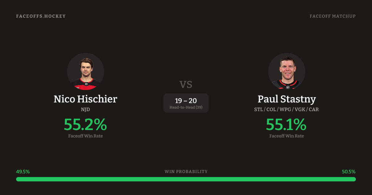 Nico Hischier vs Paul Stastny — Faceoff Head-to-Head