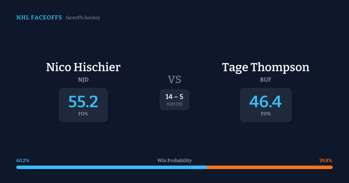 Nico Hischier vs Tage Thompson — Faceoff Head-to-Head