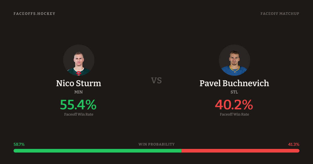 Sturm 59.0% vs Buchnevich 41.5% (+22.7%)