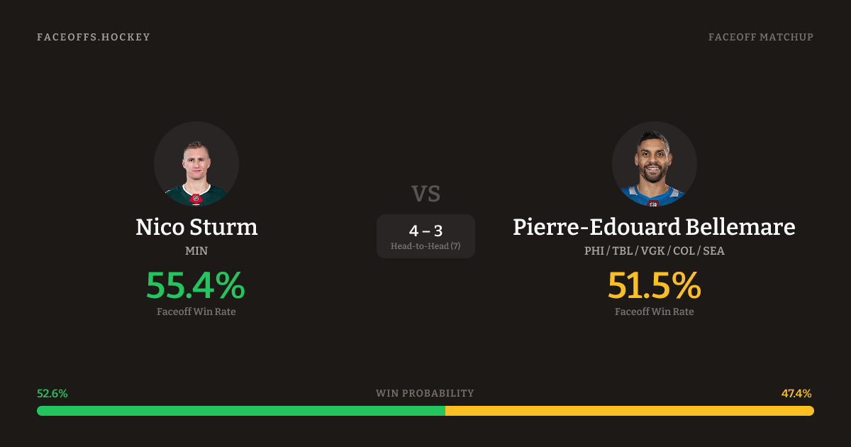 Nico Sturm vs Pierre-Edouard Bellemare — Faceoff Head-to-Head