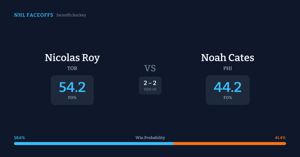 Nicolas Roy vs Noah Cates — Faceoff Head-to-Head