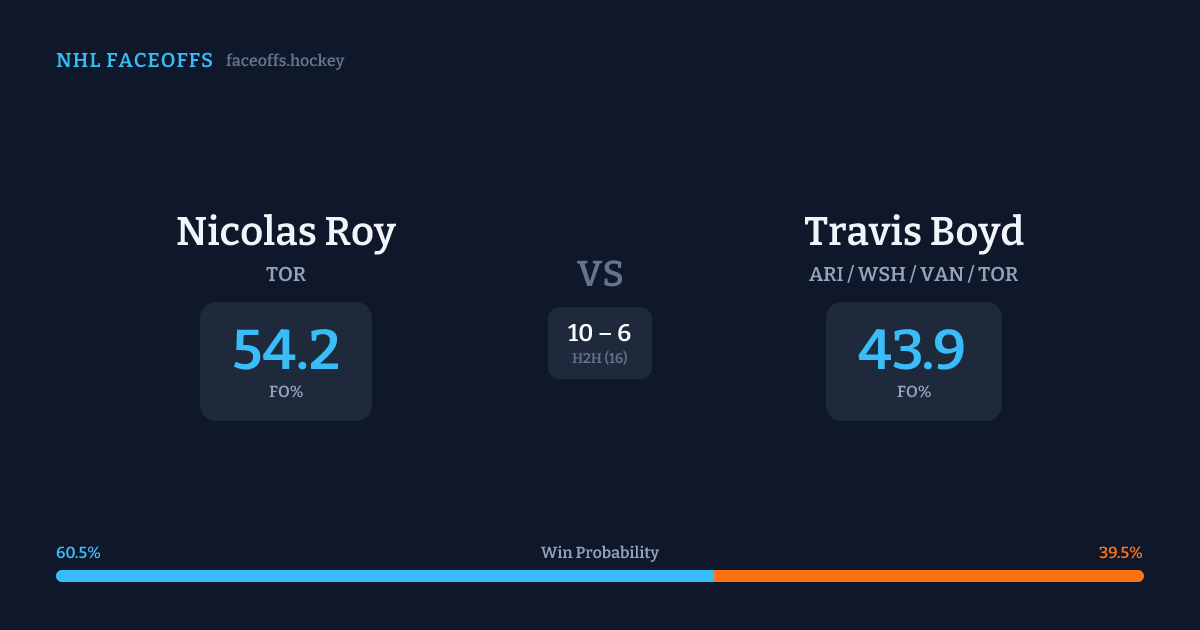 Nicolas Roy vs Travis Boyd — Faceoff Head-to-Head