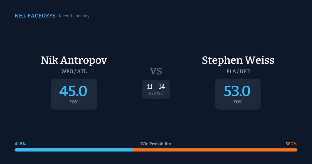 Nik Antropov vs Stephen Weiss — Faceoff Head-to-Head