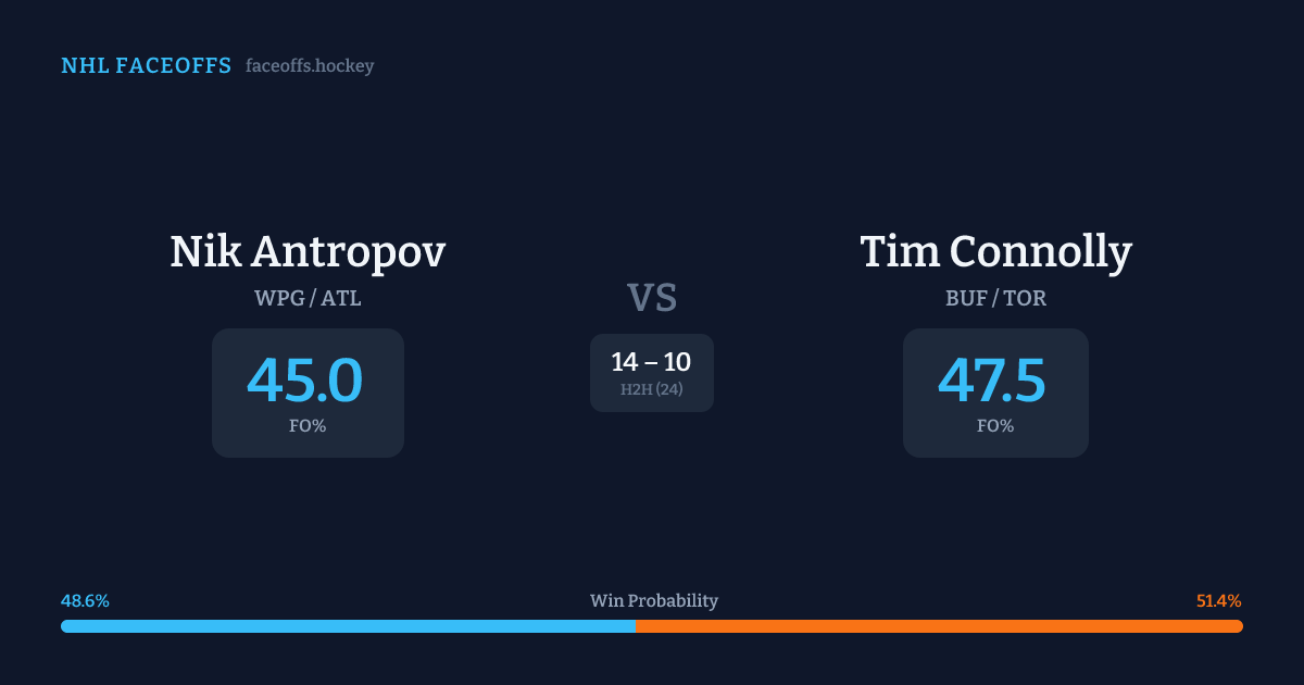 Nik Antropov vs Tim Connolly — Faceoff Head-to-Head