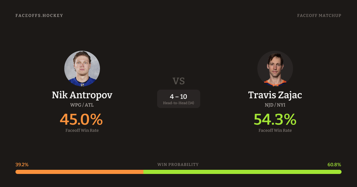 Nik Antropov vs Travis Zajac — Faceoff Head-to-Head