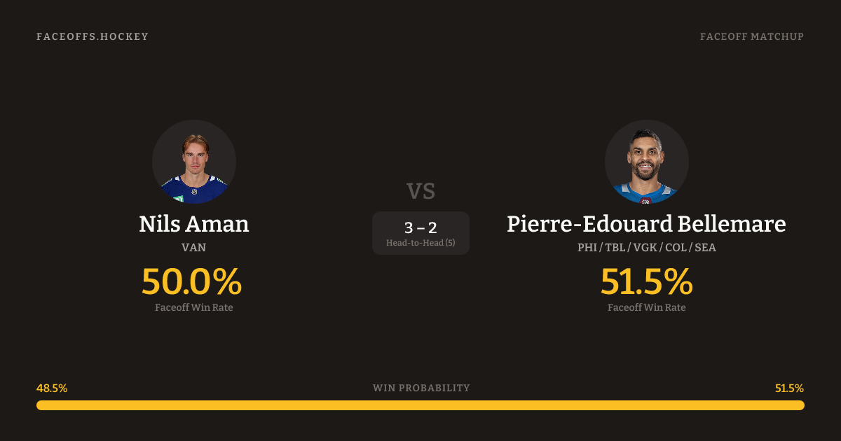 Nils Aman vs Pierre-Edouard Bellemare — Faceoff Head-to-Head