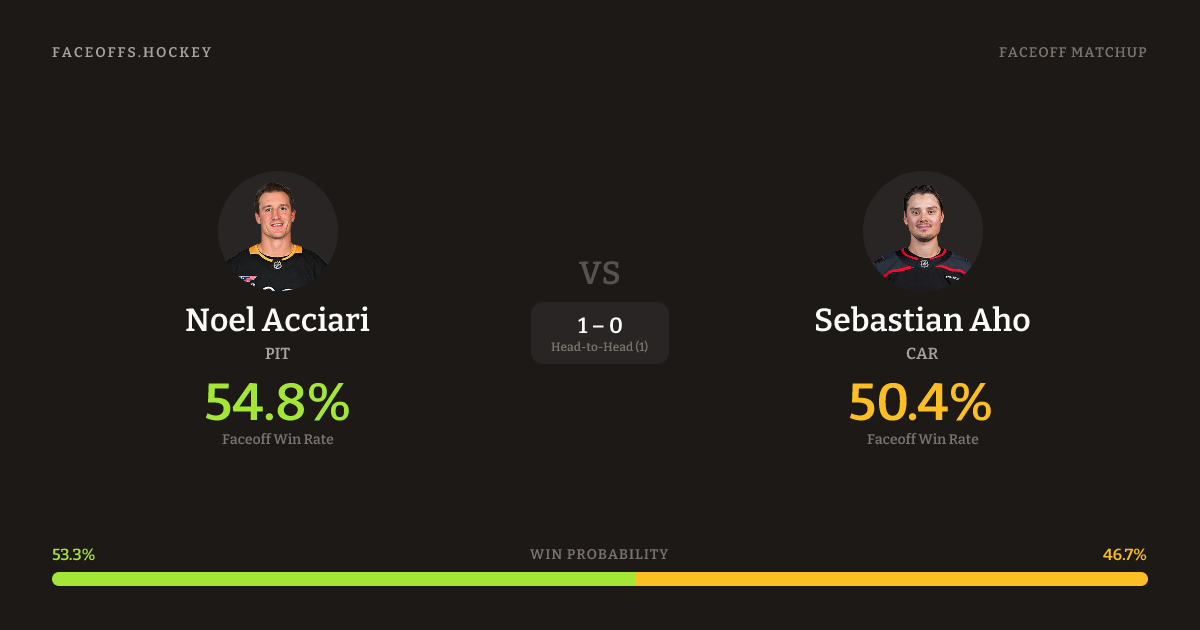 These two are closely matched in overall FO% (52.4% vs 52.7%). Look for Aho on offensive-zone draws (80% H2H, 5 meetings).