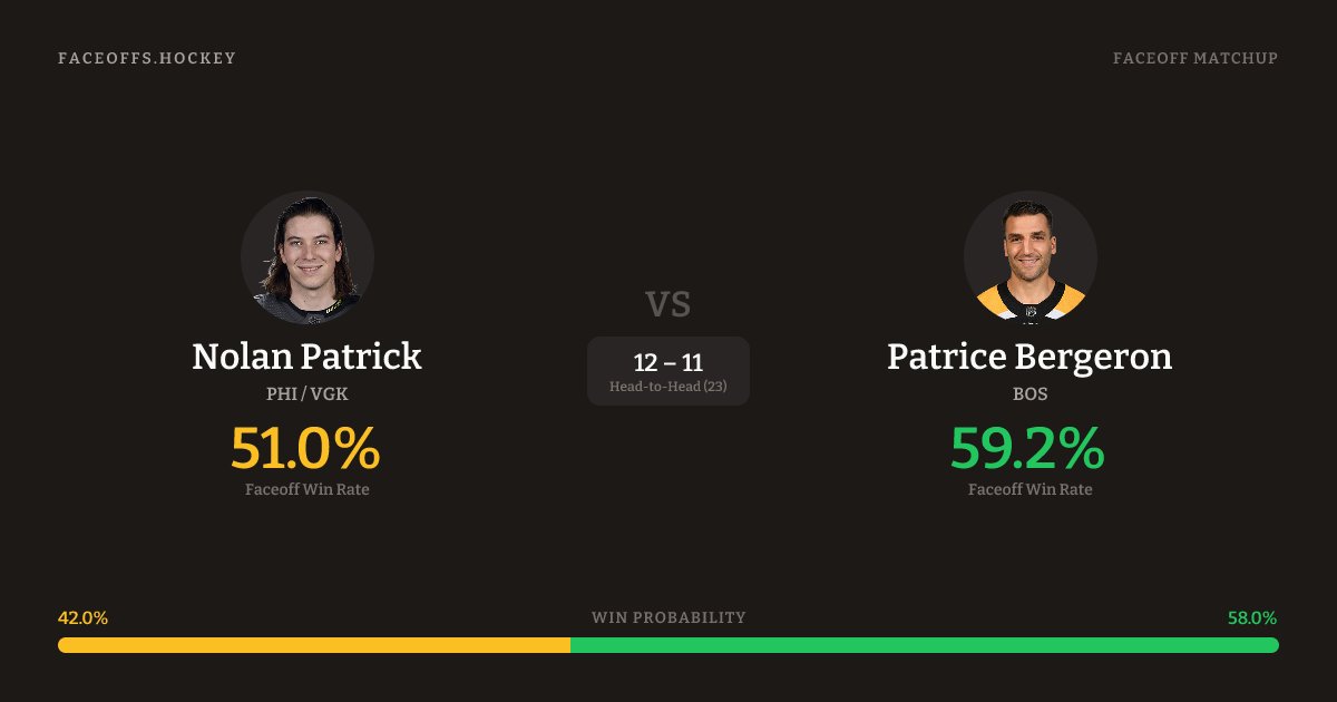 Nolan Patrick vs Patrice Bergeron — Faceoff Head-to-Head