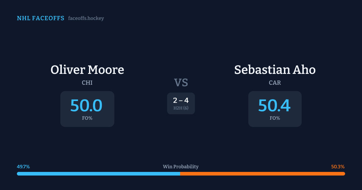 Oliver Moore vs Sebastian Aho — Faceoff Head-to-Head
