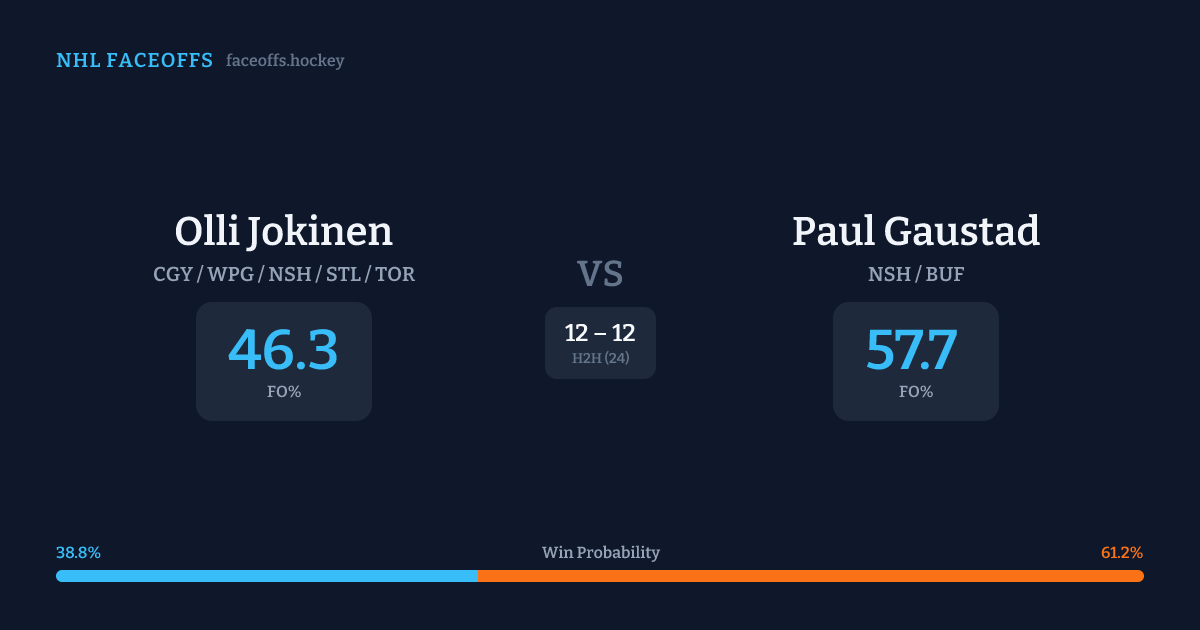 Olli Jokinen vs Paul Gaustad — Faceoff Head-to-Head