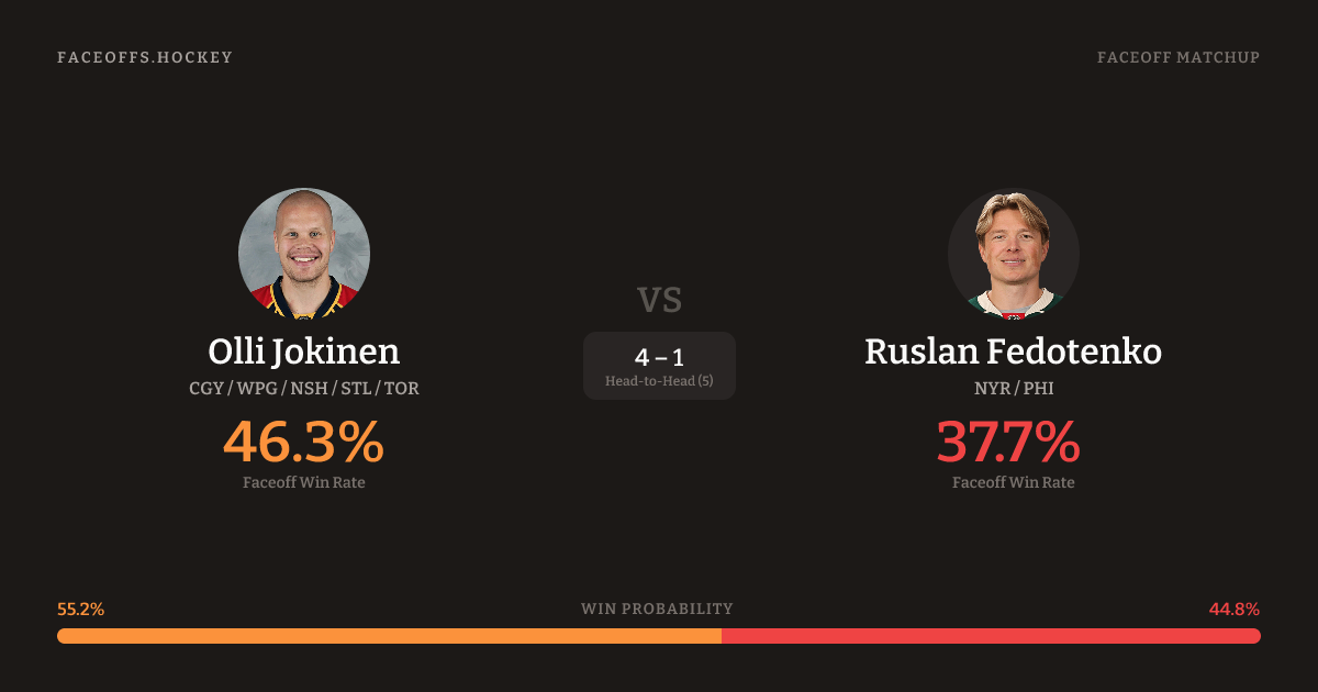Olli Jokinen vs Ruslan Fedotenko — Faceoff Head-to-Head