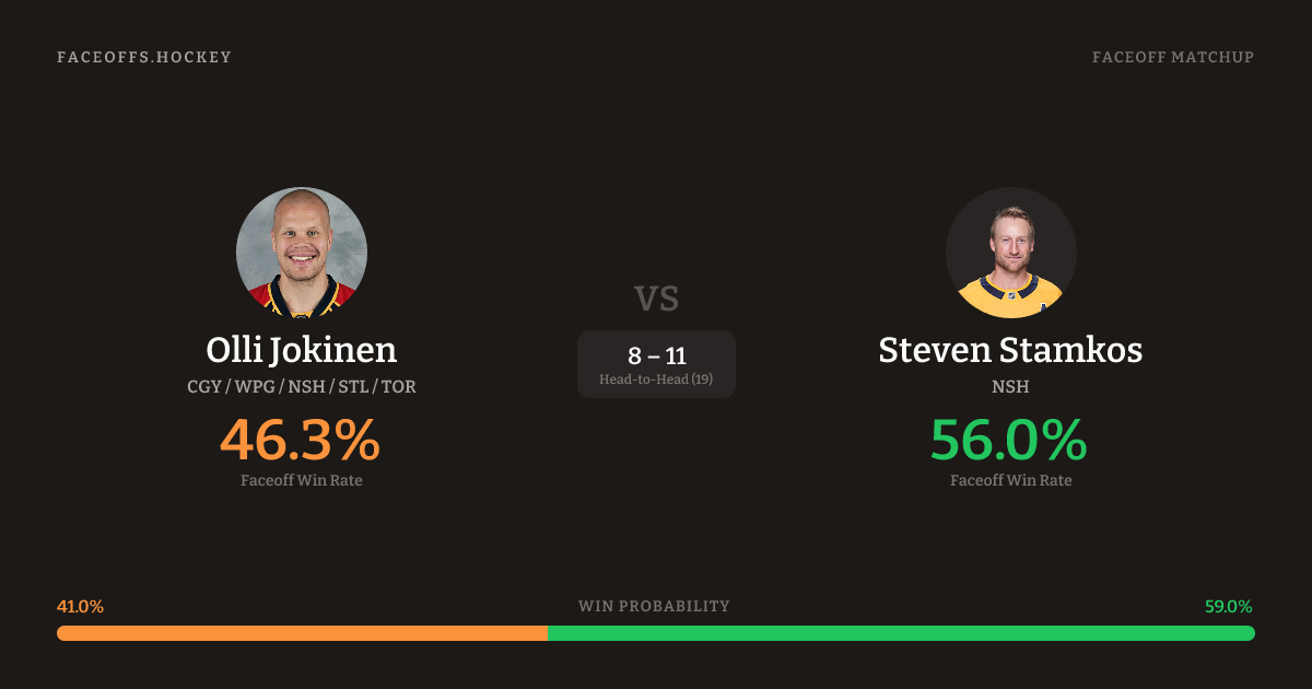 Olli Jokinen vs Steven Stamkos — Faceoff Head-to-Head