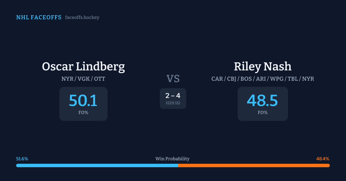 Oscar Lindberg vs Riley Nash — Faceoff Head-to-Head