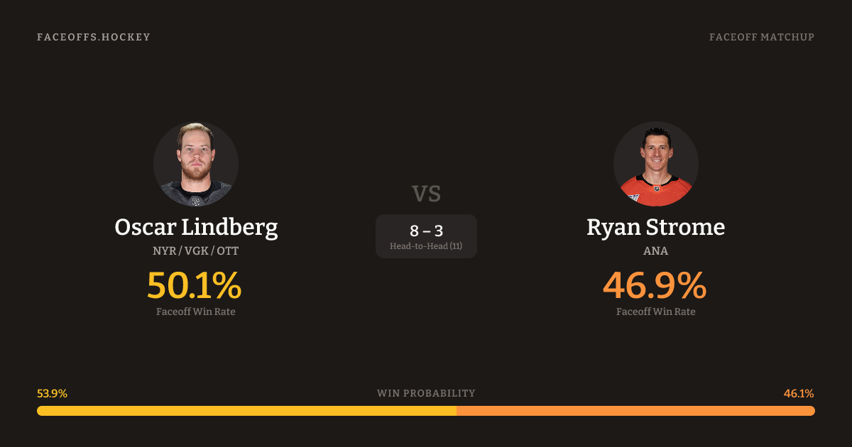 Oscar Lindberg vs Ryan Strome — Faceoff Head-to-Head