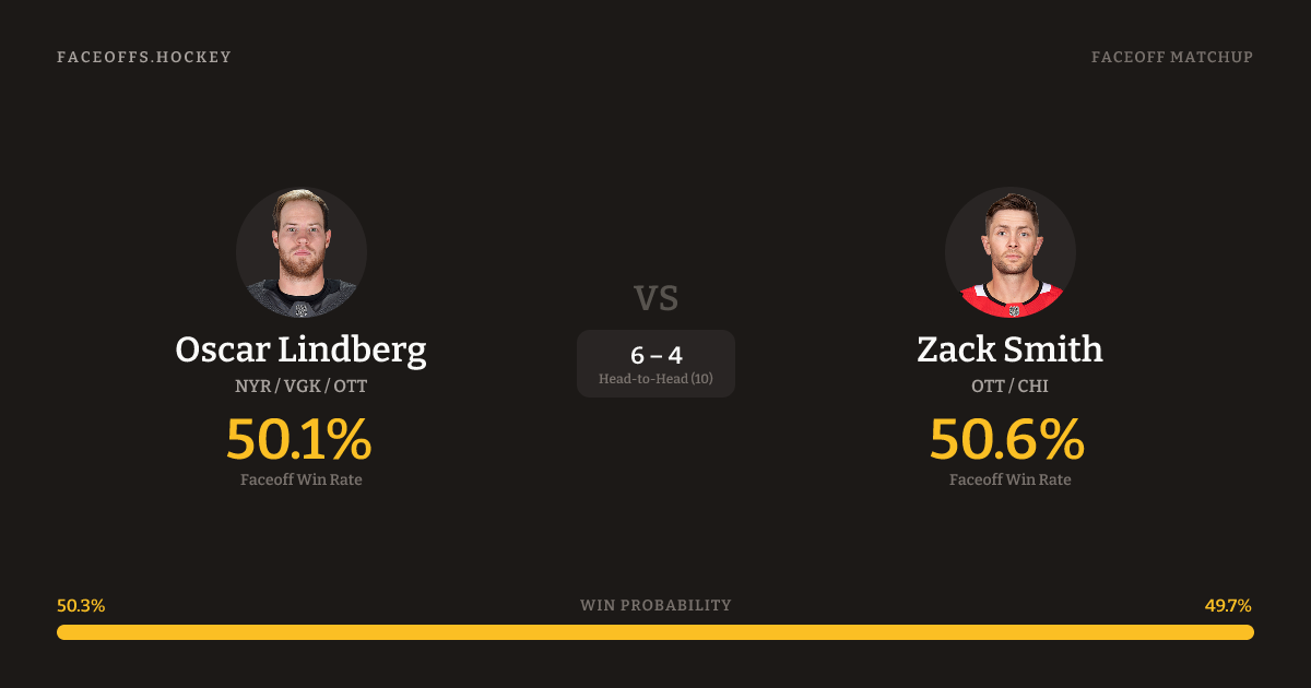 Oscar Lindberg vs Zack Smith — Faceoff Head-to-Head