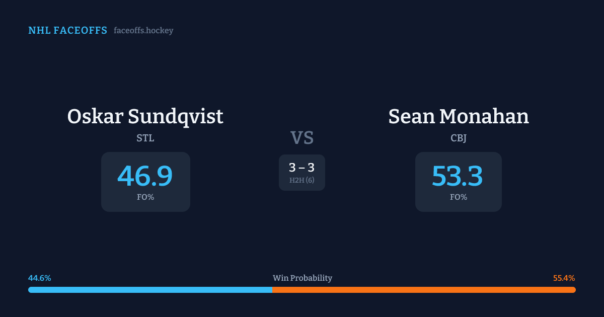 Oskar Sundqvist vs Sean Monahan — Faceoff Head-to-Head