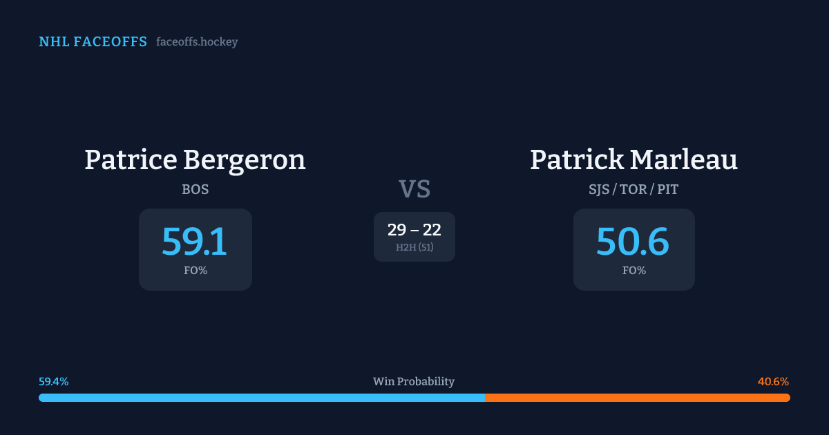 Patrice Bergeron vs Patrick Marleau — Faceoff Head-to-Head