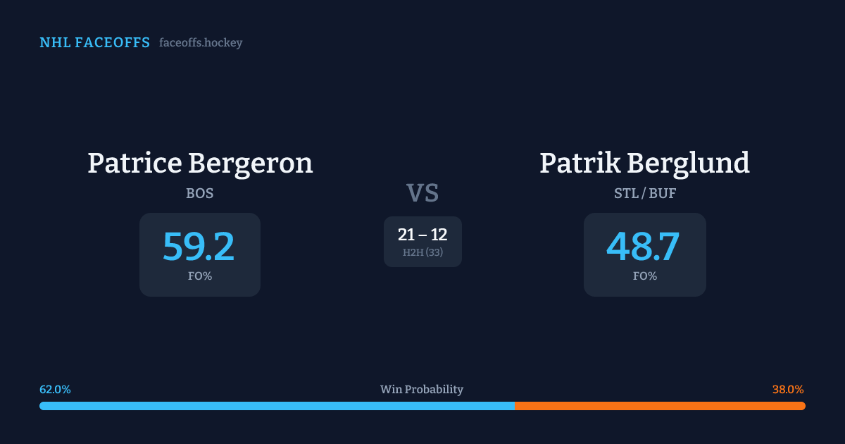 Patrice Bergeron vs Patrik Berglund — Faceoff Head-to-Head