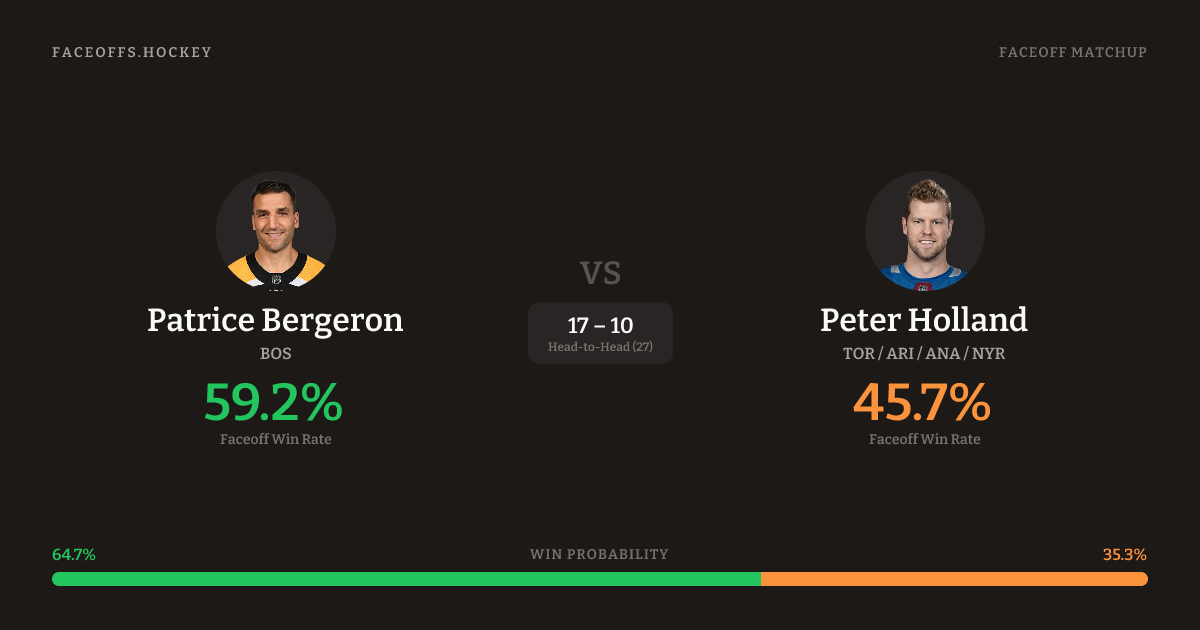 Patrice Bergeron vs Peter Holland — Faceoff Head-to-Head