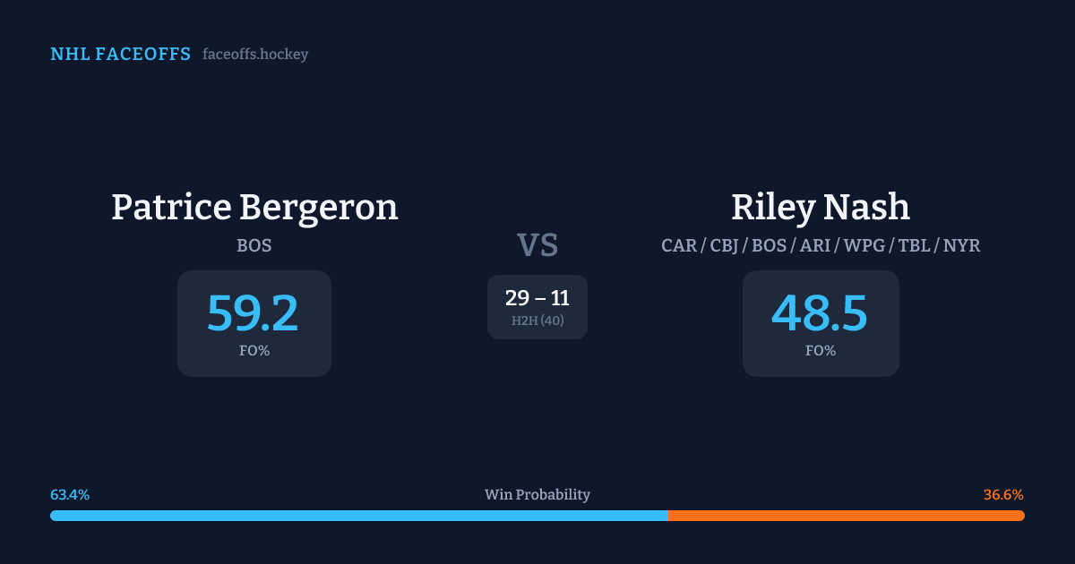 Patrice Bergeron vs Riley Nash — Faceoff Head-to-Head