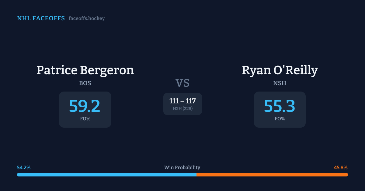 Patrice Bergeron vs Ryan O'Reilly — Faceoff Head-to-Head