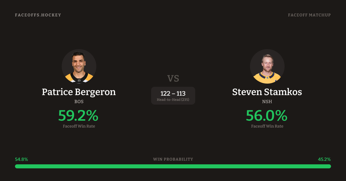 Patrice Bergeron vs Steven Stamkos — Faceoff Head-to-Head