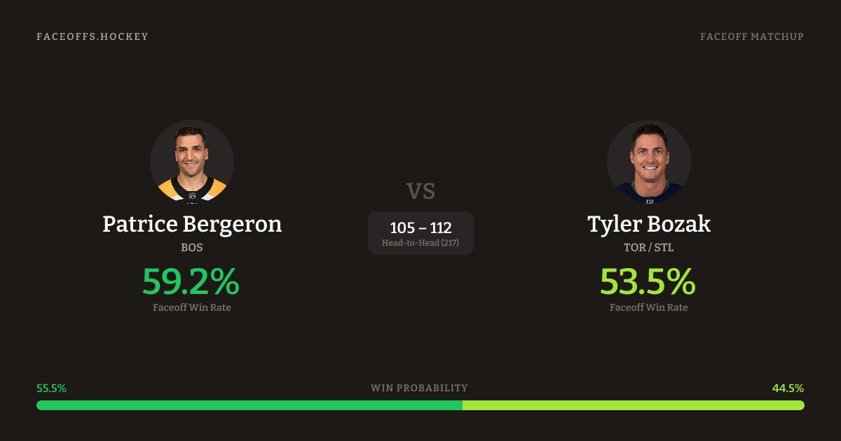 Patrice Bergeron vs Tyler Bozak — Faceoff Head-to-Head