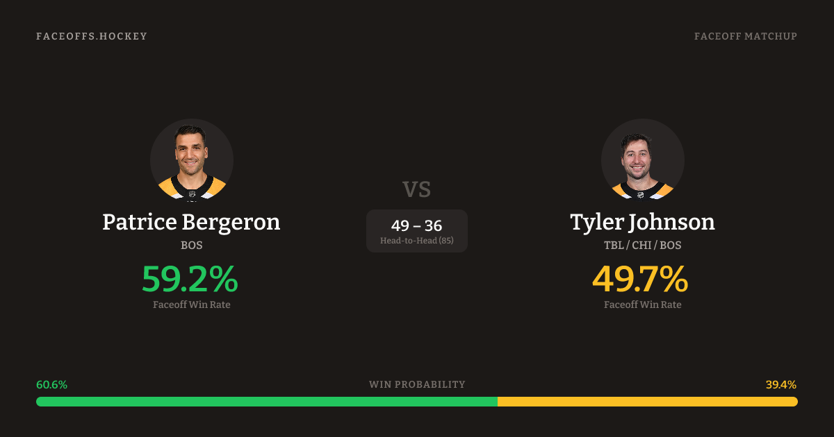 Patrice Bergeron vs Tyler Johnson — Faceoff Head-to-Head