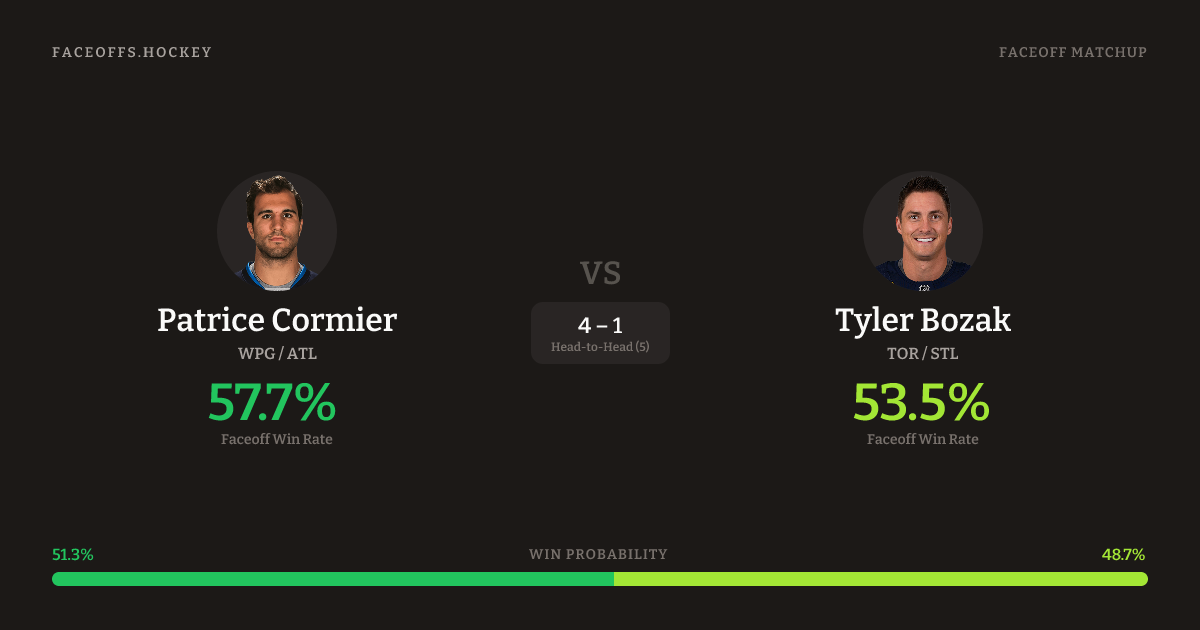 Patrice Cormier vs Tyler Bozak — Faceoff Head-to-Head