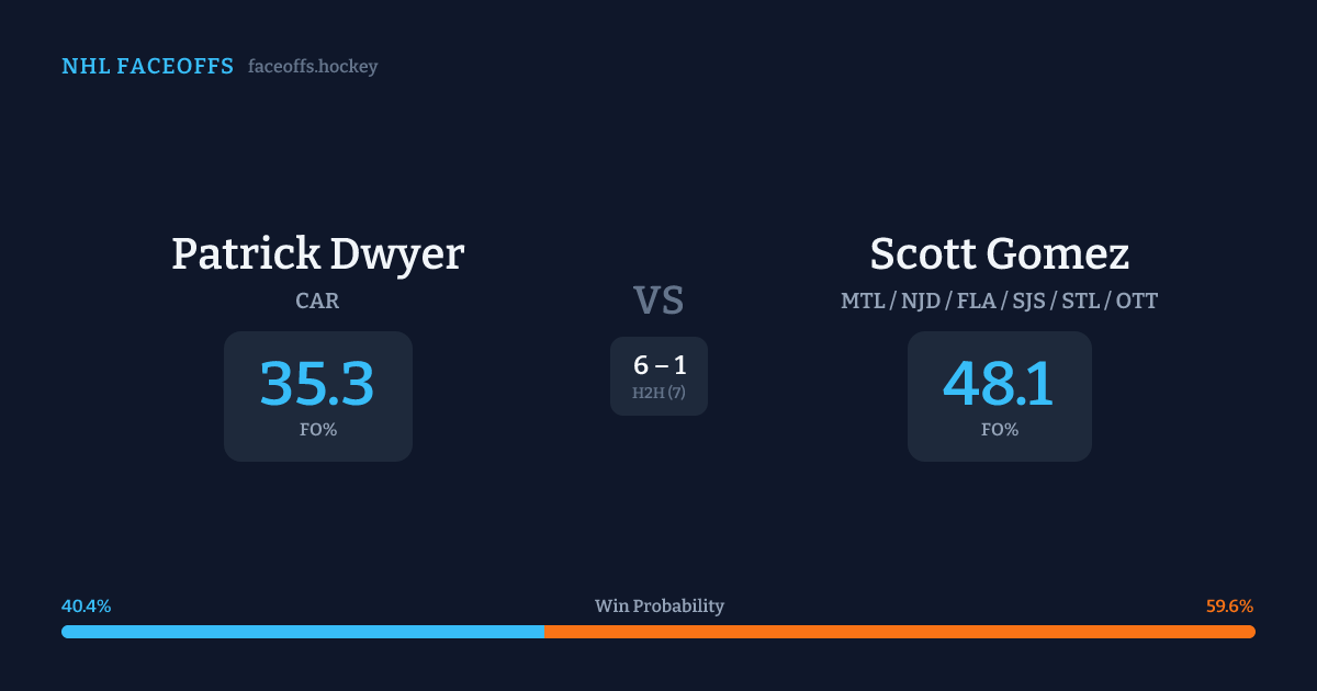 Patrick Dwyer vs Scott Gomez — Faceoff Head-to-Head
