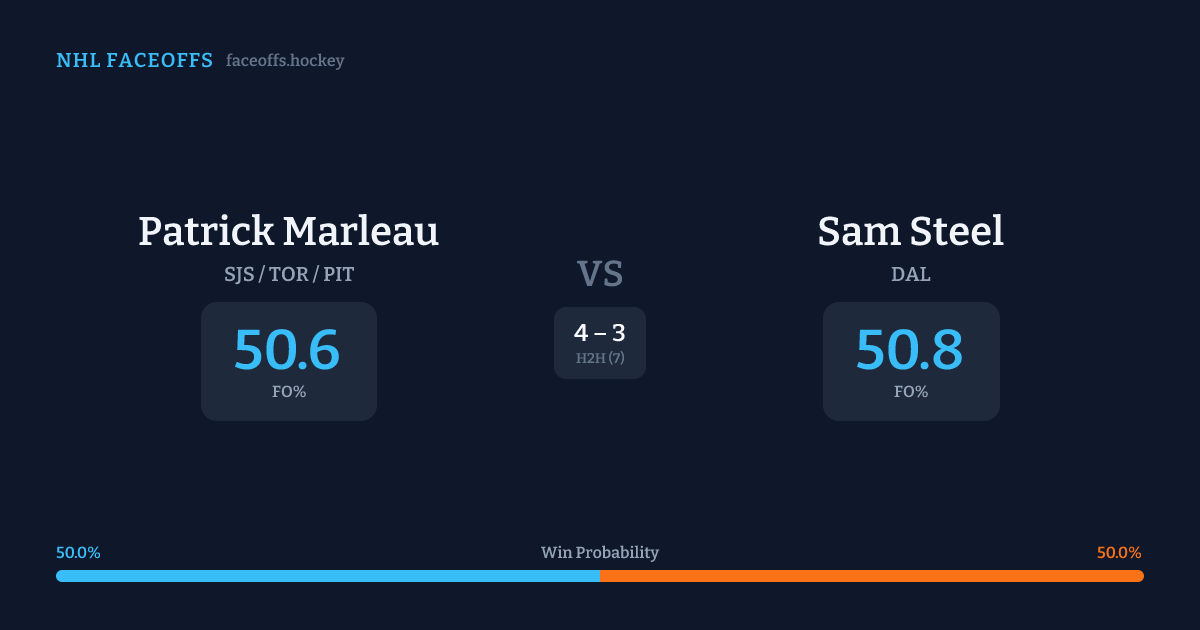 Patrick Marleau vs Sam Steel — Faceoff Head-to-Head