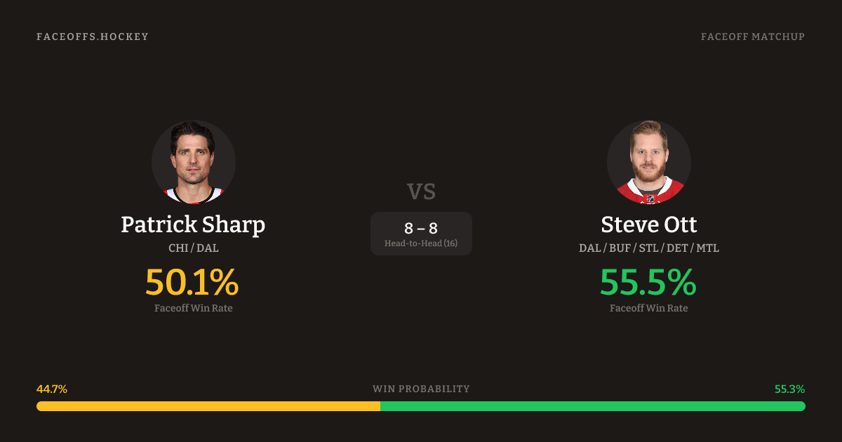 Patrick Sharp vs Steve Ott — Faceoff Head-to-Head