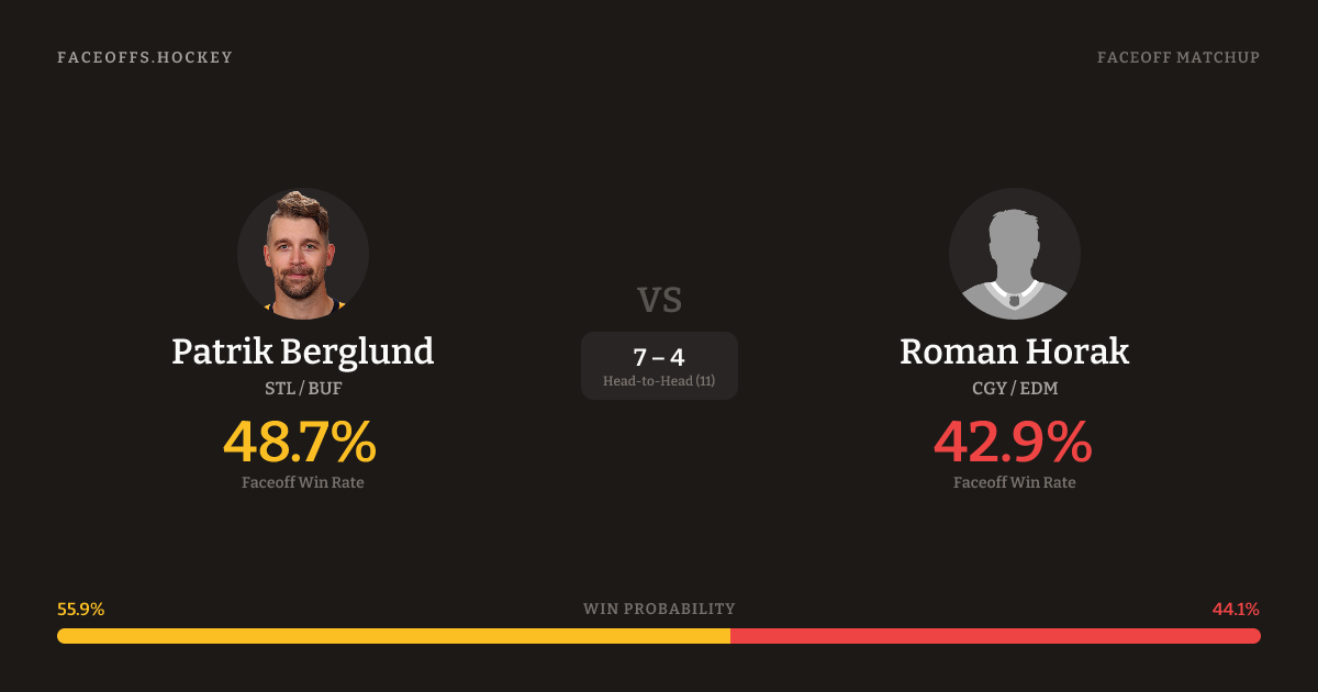 Patrik Berglund vs Roman Horak — Faceoff Head-to-Head