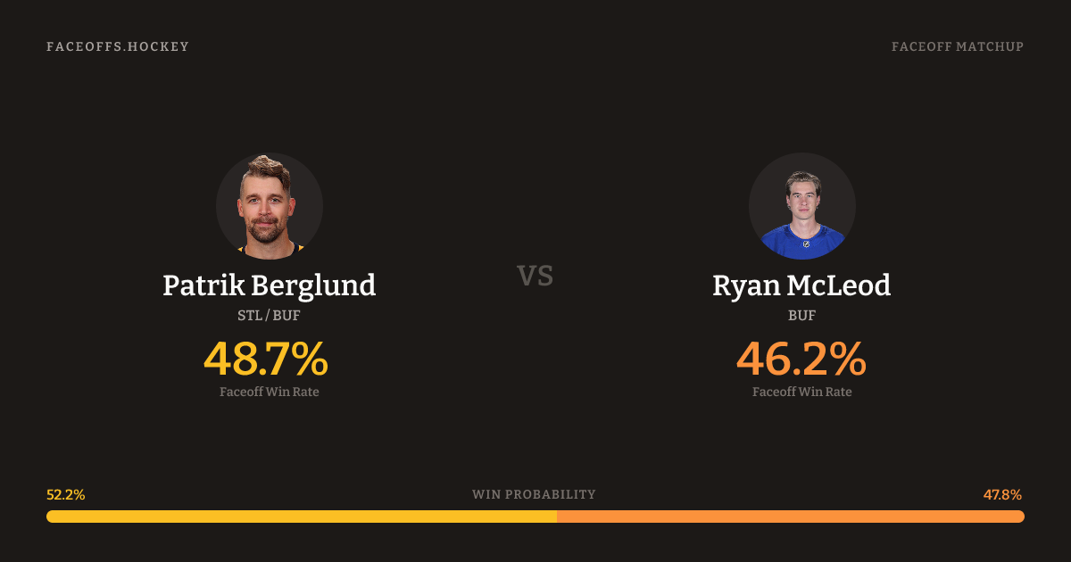 Berglund shoots left. McLeod is 49.2% vs left-shot opponents (2,579).