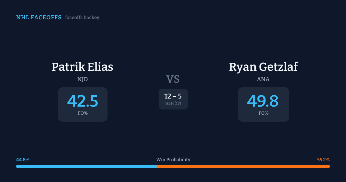 Patrik Elias vs Ryan Getzlaf — Faceoff Head-to-Head