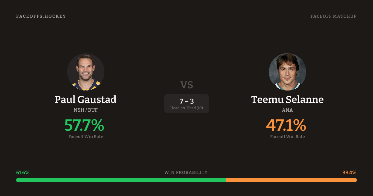 Paul Gaustad vs Teemu Selanne — Faceoff Head-to-Head